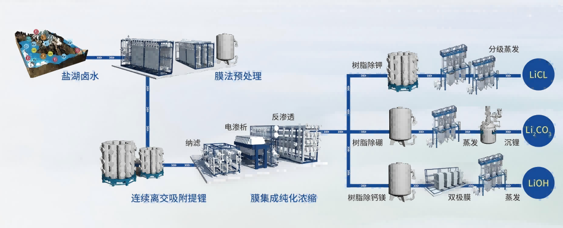 1. 适用范围广,可实现Li含量大于100 ppm盐湖卤水或其他含锂水资源的提锂